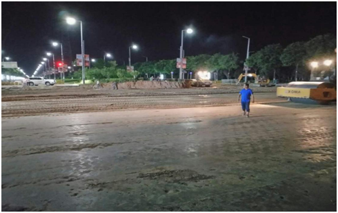 西環(huán)路平交口道路自建設(shè)以來(lái),項(xiàng)目部克服時(shí)間緊、任務(wù)重、溝通難的實(shí)際困難,合理安排施工順序和時(shí)間,嚴(yán)格按照相關(guān)道路施工標(biāo)準(zhǔn)施工;廣大筑路員工冒著酷暑,加班加點(diǎn),熱火朝天地奮戰(zhàn)在施工現(xiàn)場(chǎng);為了保證施工安全,防止塵土和噪音污染,項(xiàng)目部在整個(gè)路段都設(shè)置了圍擋,利用大型挖機(jī)對(duì)路面進(jìn)行開(kāi)挖,人頭攢動(dòng),機(jī)聲隆隆,一片繁忙,為早日交工提供了充分保障。(徐堯)