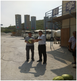 入伏以來,我省各地驕陽似火,氣溫節(jié)節(jié)高升,直逼40度。7月25日上午,陜西省華源建筑工程有限責(zé)任公司工程部周部長(zhǎng)一行深入公司所屬海林御苑項(xiàng)目部、華原西道項(xiàng)目部以及塑鋼窗廠、攪拌站等項(xiàng)目部、廠、站,代表公司慰問奮戰(zhàn)在高溫環(huán)境下的一線人員,為他們送去西瓜和公司的濃濃關(guān)愛,送去一抹綠蔭,送去一絲清涼。